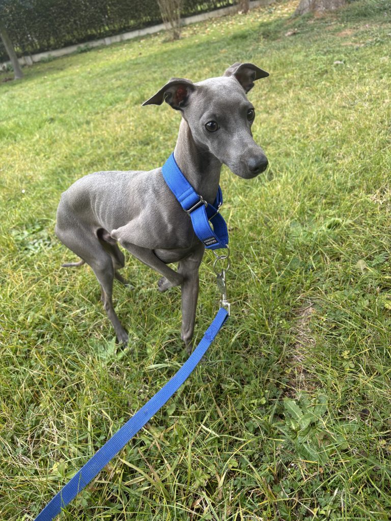 Suitable for neck sizes of 20 cm and above. It’s a common choice for Italian Greyhounds and other small dogs. In some cases, the tightening loop is made 2 mm narrower (while the adjustable loop remains 2,5 cm wide) to ensure ideal tightening and release properties.