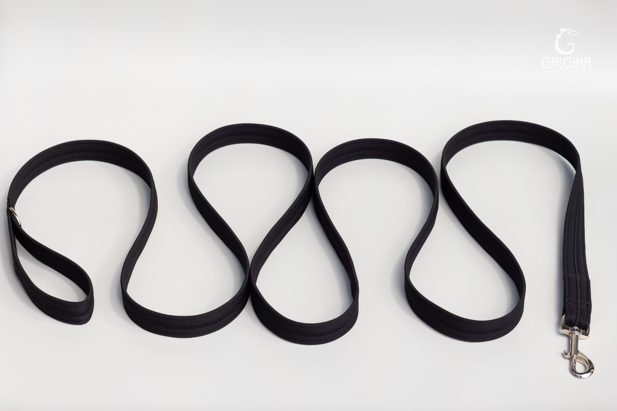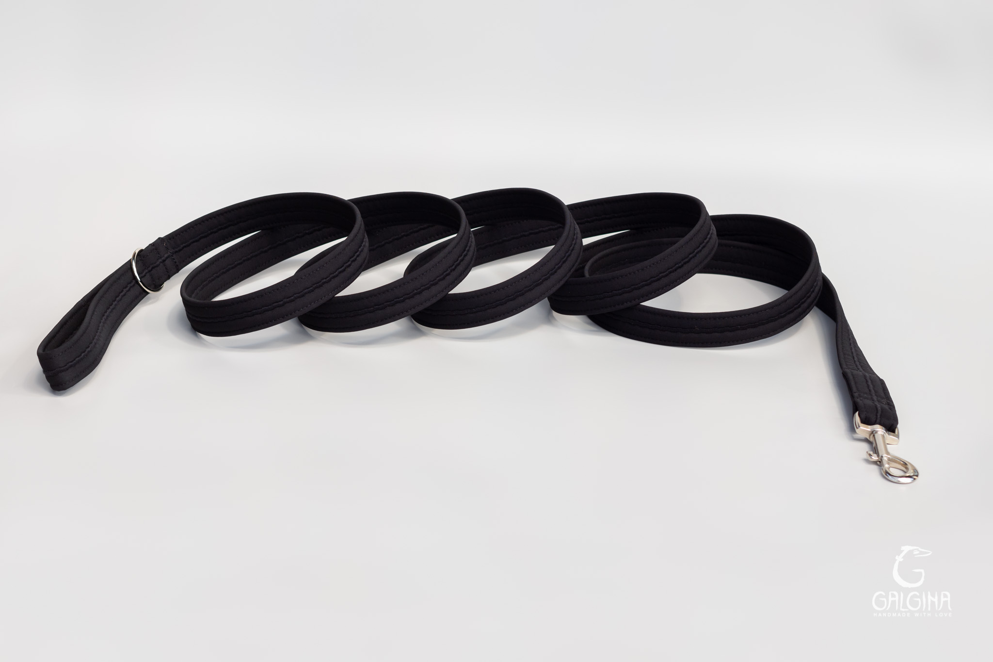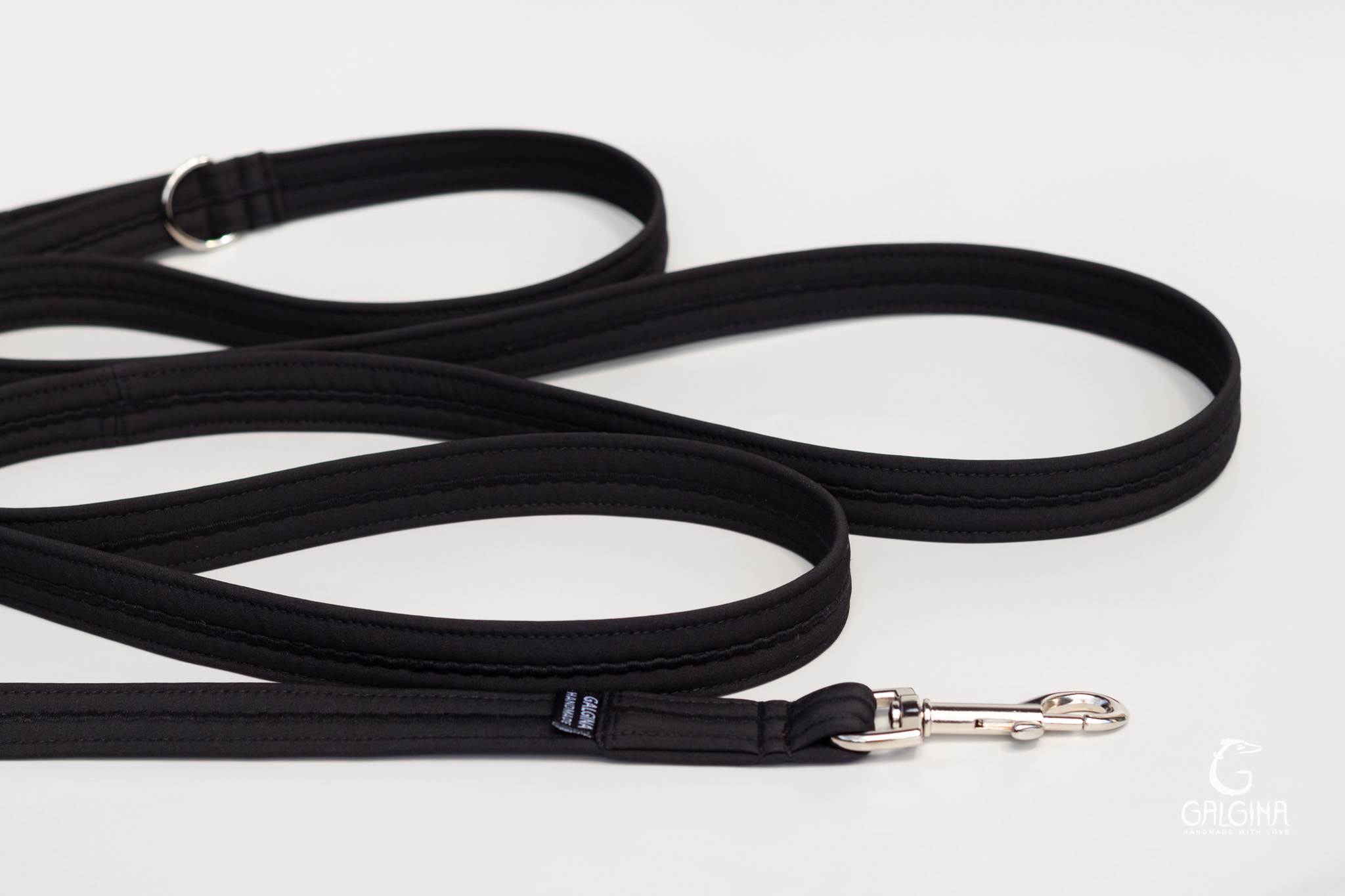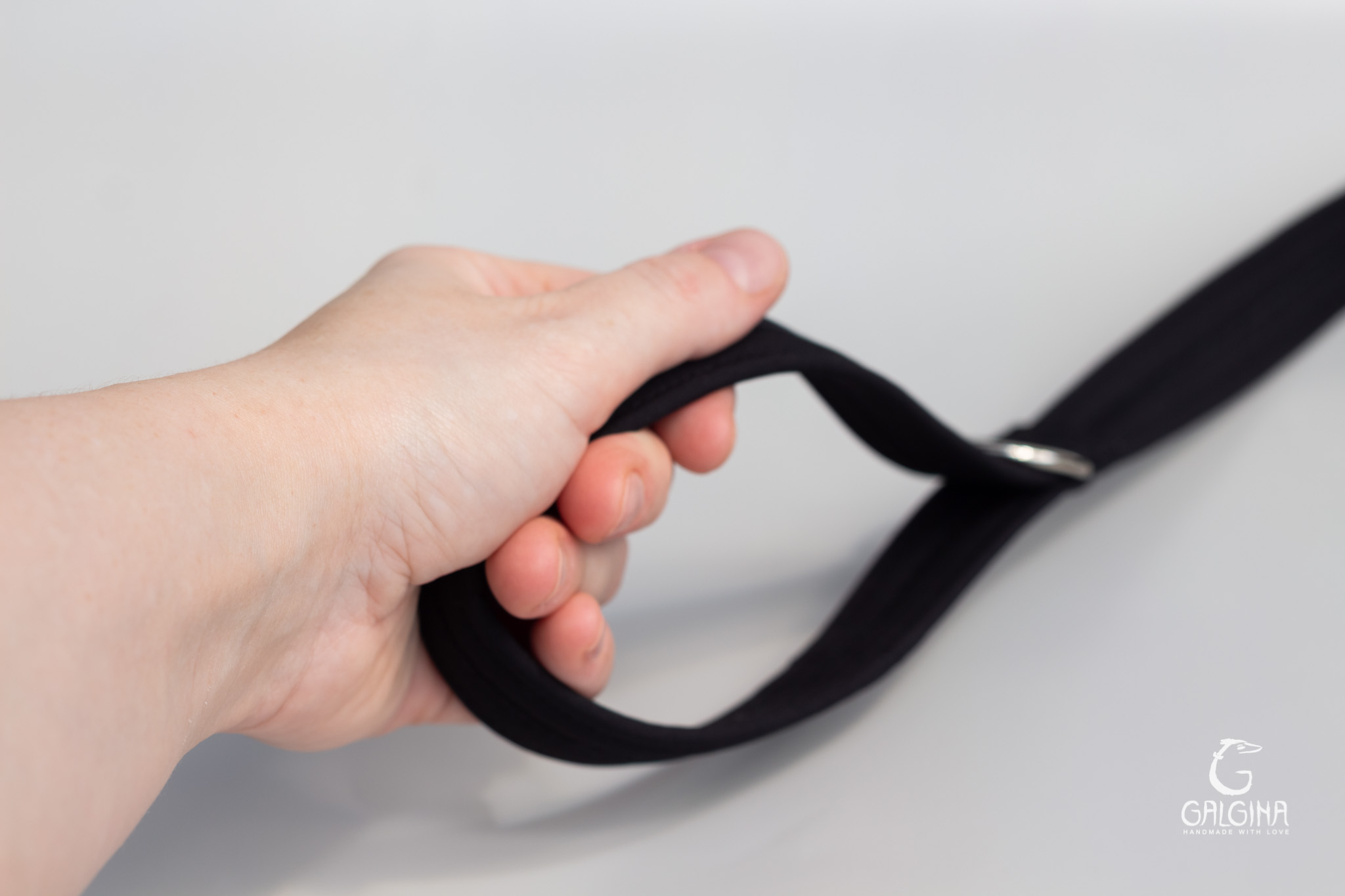The long softshell leash is the longest model in our range, measuring 3 meters. It is made from a flat nylon strap wrapped in softshell fabric, which is a durable, water-repellent, easy to maintain, and quick-drying material. The leash is soft, smooth, and has a cushioned feel. Due to the rounded edges that do not cut into the hands, it is comfortable to handle. The leash features an embroidered seam along the middle of the strap, which gives it a matching look with the harnesses.