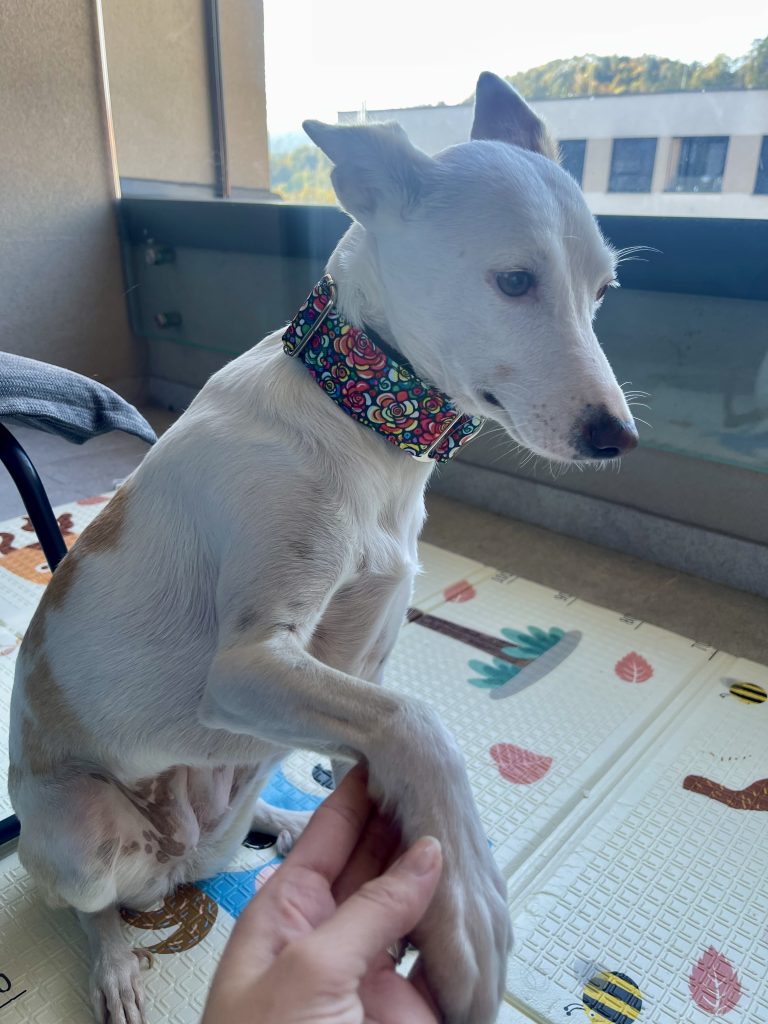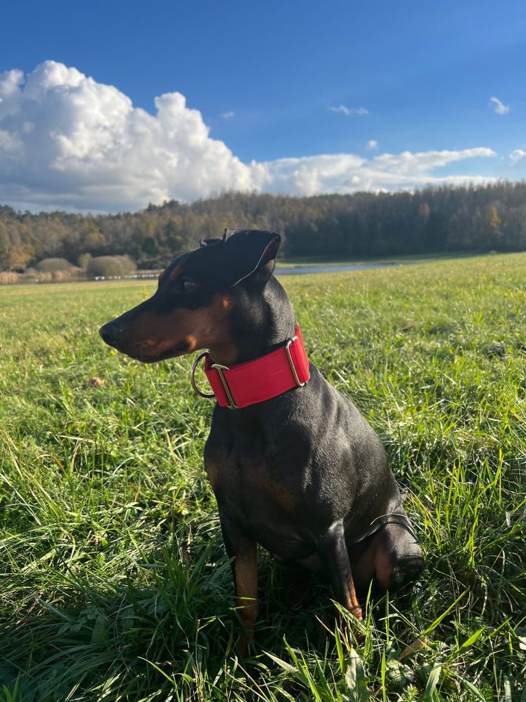 Each martingale collar is custom-made for the individual dog. The size is adjustable within a smaller range to allow for easy fitting and removal.