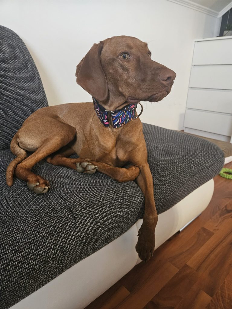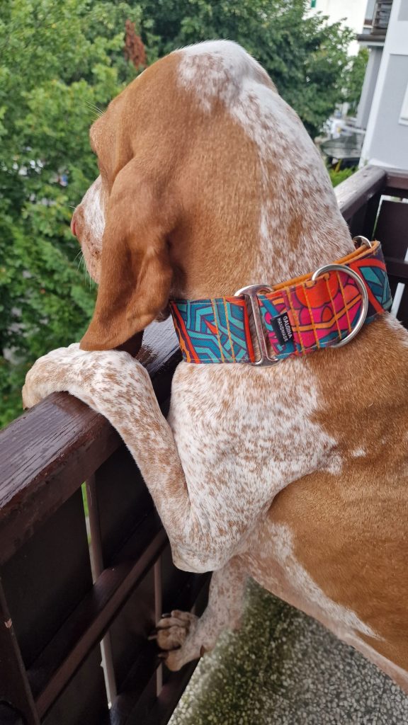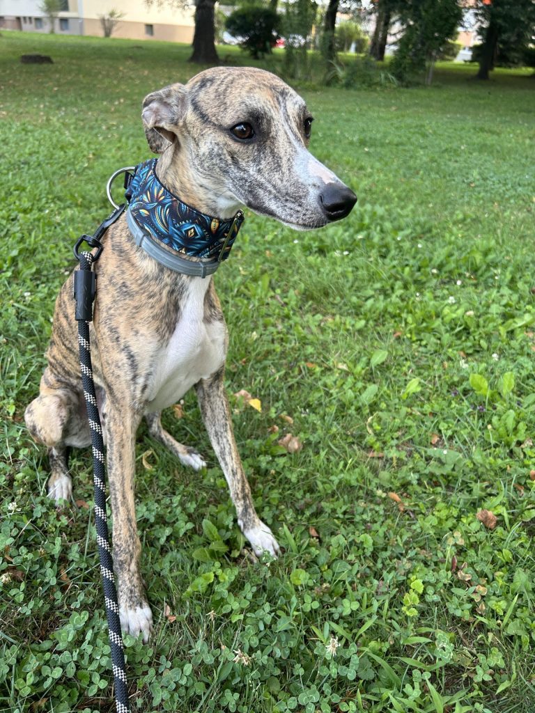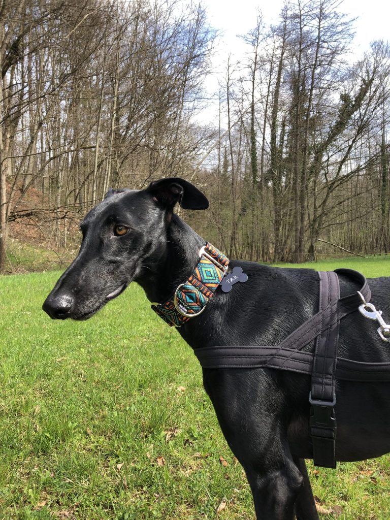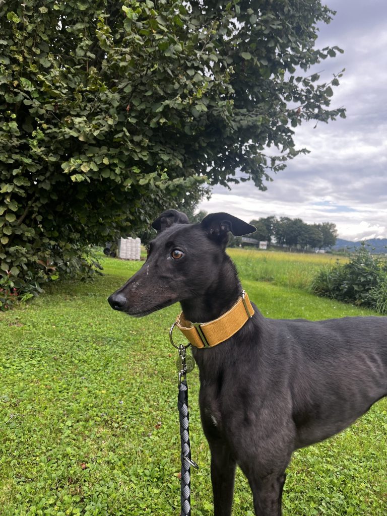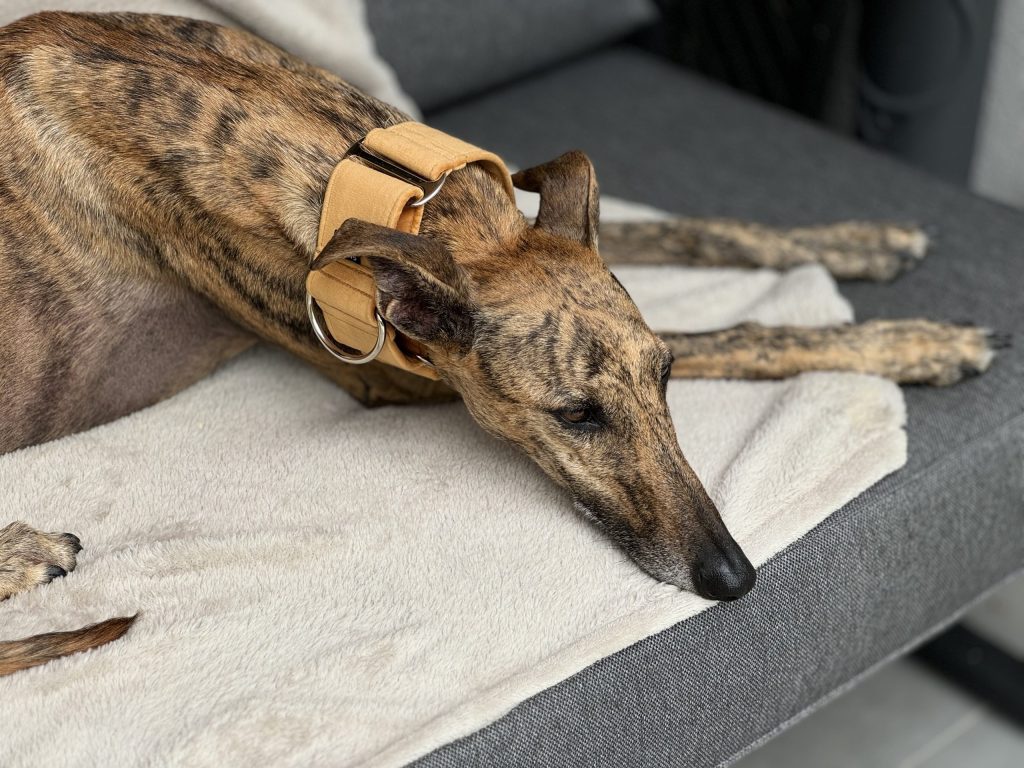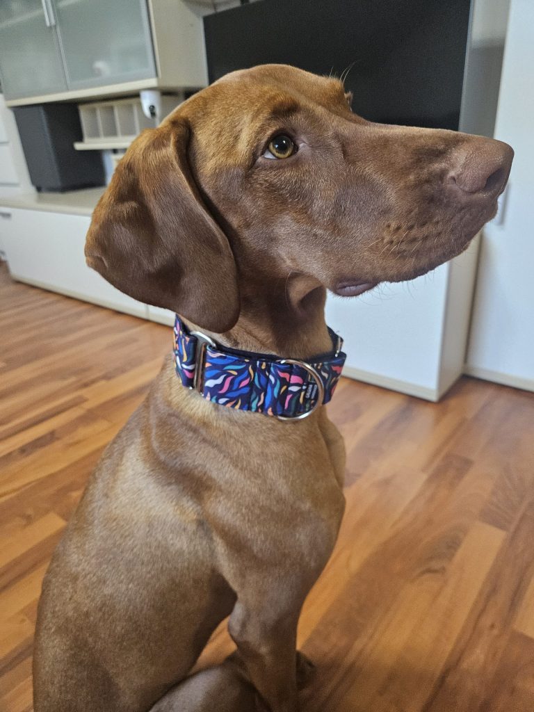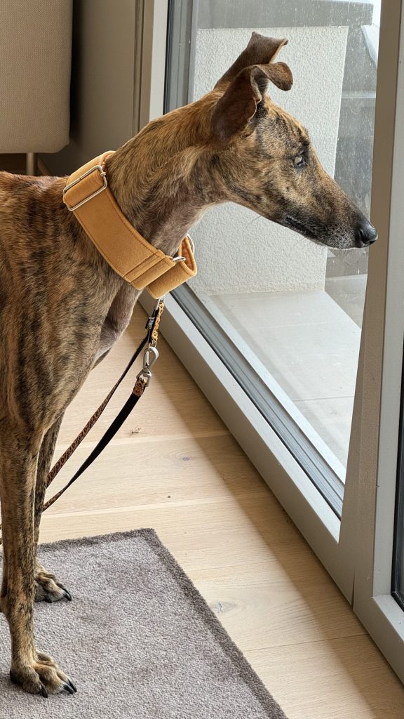 This type of collar is intended for sighthounds, who have narrow heads and can often slip out of regular collars. It is also suitable for other narrow-headed dogs, shy dogs, or those who tend to escape from collars. The primary purpose of the collar is to prevent escape, which can happen if a collar unexpectedly slips off. It is not intended for dogs that pull on the leash, nor is it designed to correct unwanted behaviors, especially not leash-pulling.